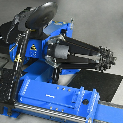 - Благодаря независимому перемещению зажимного устройства и каретки с монтажным инструментом, а также системе быстрого поворота, достигается максимальная скорость обслуживания больших шин.